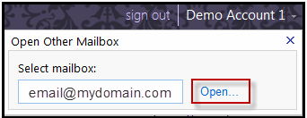 2. In the upper right hand corner select the drop-down arrow next to your display name to pull up the "Open Other Mailbox" window.