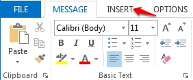 3. Fill out the E-mail message, as needed, select the location within the body the screen-shot will be placed and choose the Insert tab.
