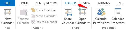 3. Once the ribbon has adjusted to reflect calendaring options, select the Folder Tab.