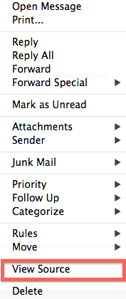 1. Right Click on the message in the mailbox.2. Select View Source.